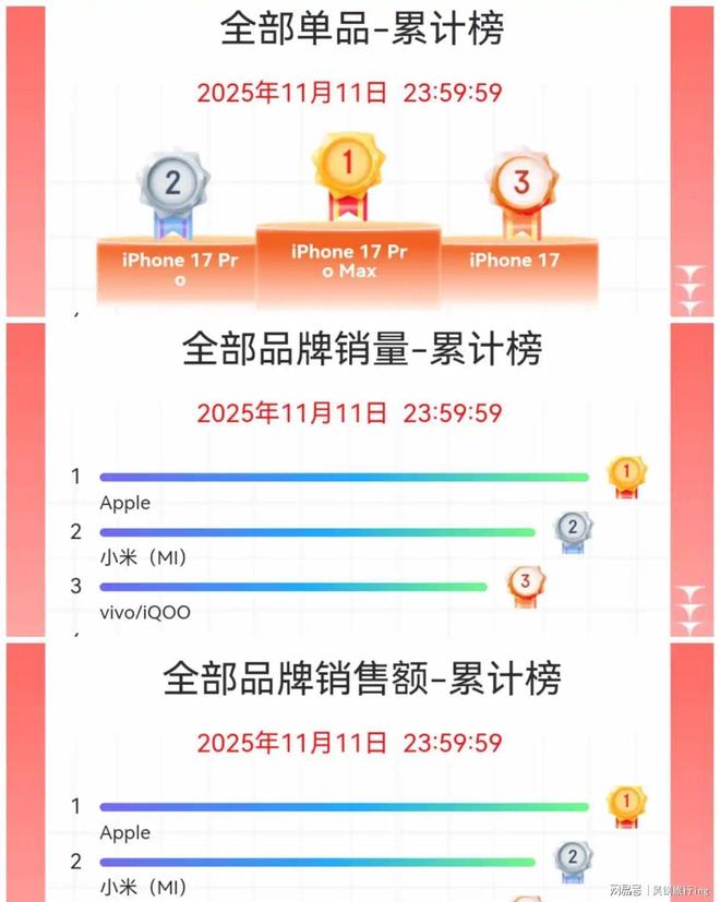 苹果iPhone 17系列稳坐销量与销售额头把交椅,甚至包揽了单品榜前三。